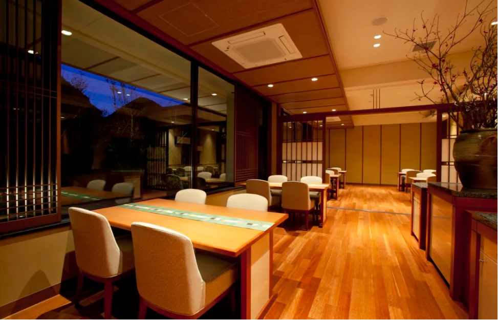 温かいものは温かいうちに、冷たいものは冷たいように。 最も美味しい状態で自慢の逸品を味わって頂くための場、 それがダイニング「醍醐」。 温もりあるインテリアで、美食の時間を演出します。