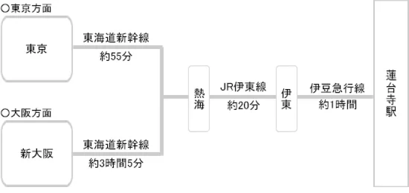 伊豆急下田駅より車で8~10分 / 伊豆急行「蓮台寺駅」より徒歩5分、車2分